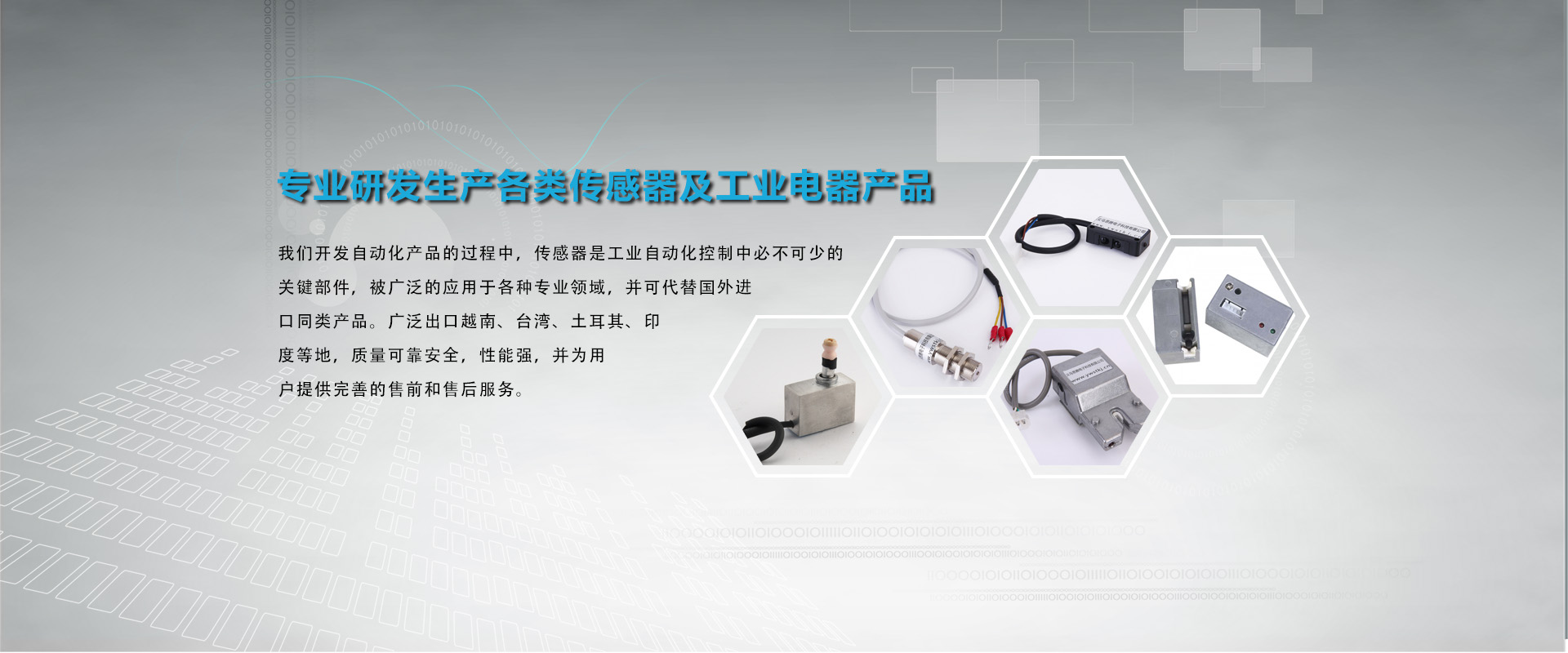 義烏思騰電子科技有限公司國(guó)內(nèi)前沿的傳感器及工業(yè)電器電器產(chǎn)品研發(fā)、生產(chǎn)和銷(xiāo)售一體化的公司,我們開(kāi)發(fā)的過(guò)程自動(dòng)化產(chǎn)品。傳感器是工業(yè)自動(dòng)化控制中必不可少的關(guān)鍵部件,被廣泛的應(yīng)用于各種專(zhuān)業(yè)領(lǐng)域,并可代替國(guó)外進(jìn)口同類(lèi)產(chǎn)品。廣泛出口越南、臺(tái)灣、土耳其、印度等地,質(zhì)量可靠安全,性能強(qiáng),并為用戶(hù)提供完善的售前和售后服務(wù)。
